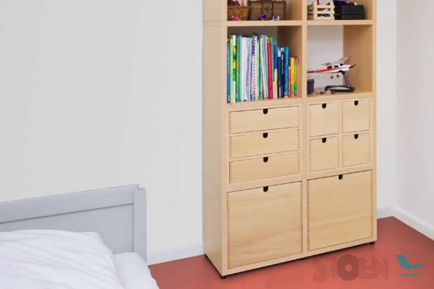 Het kastensysteem 355 is samengesteld uit slechts twee verschillende lengtes van planken: een korte (S) en een lange (L). Dit ingenieus eenvoudige principe inspireert onze klanten, zodat we dezelfde award-winnende ontwerp in zes verschillende ontwerpen maken.