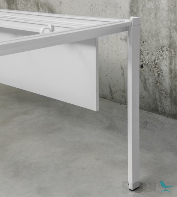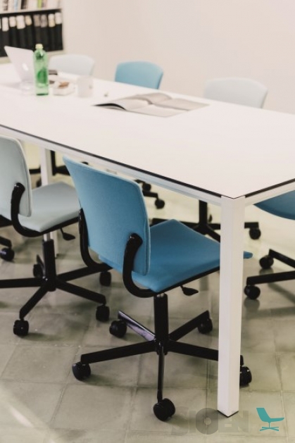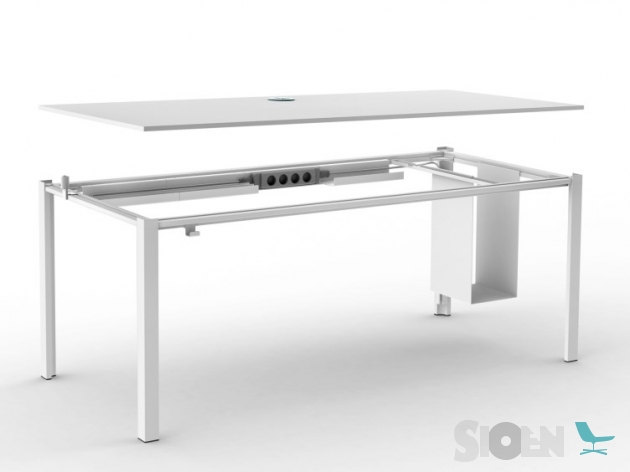 Een modulair systeem van tafels dat specifiek is ontworpen om te werken met gevarieerde oplossingen en een groot assortiment accessoires. Met een intuïtieve assemblageaanpak en eenvoudige lijnen, is het flexibel en past het zich gemakkelijk aan gemeenschappelijk gebruik aan. De grote verscheidenheid aan accessoires kan in de tafel worden opgenomen om aan meerdere kantoorbehoeften te voldoen. Ze zijn verkrijgbaar in een breed scala aan epoxy- en gelakte kleuren en kunnen worden aangepast aan de behoeften van het bedrijf.