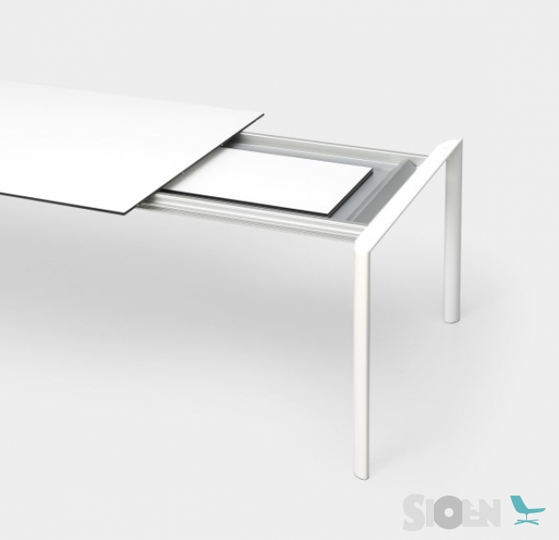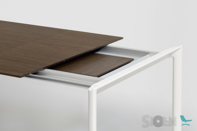 Uitschuifbare tafels zijn voorzien van getekende aluminium verlengingen, ondergebracht in een speciaal compartiment.