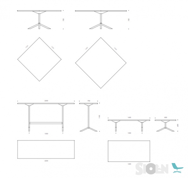 Frame van polyurethaan gegoten staal, grafiet of wit / grijs passend bij de top. Verstelbare poten.