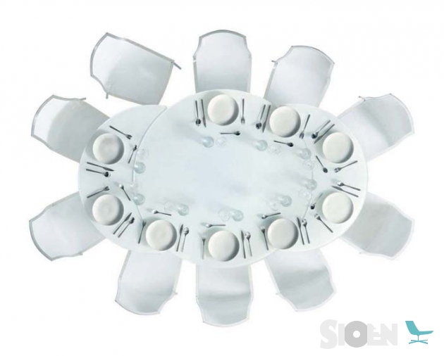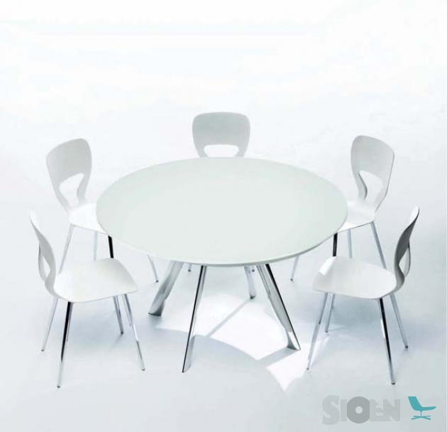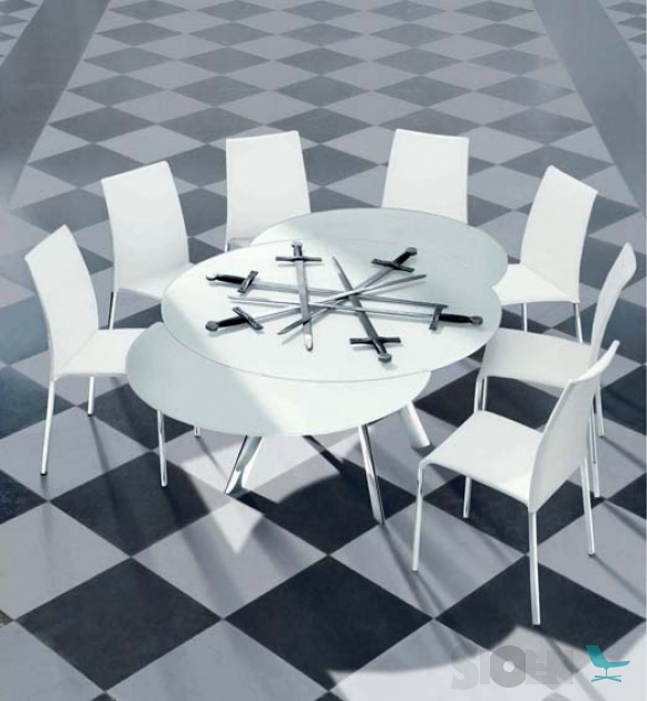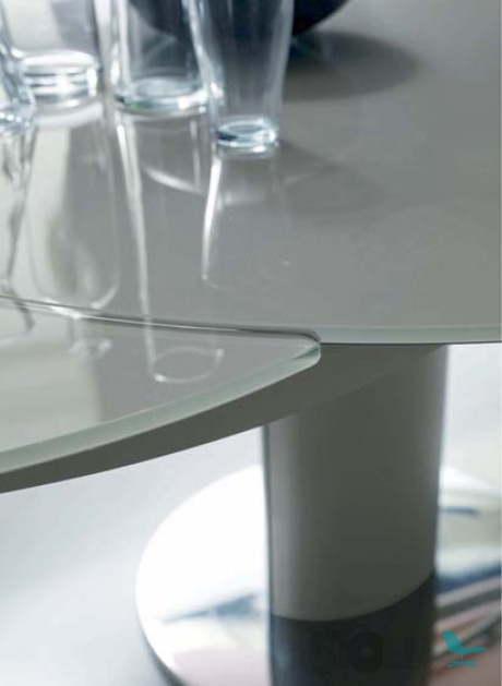 Bontempi Giro is een ronde tafel uitschuifbaar tot een ovale vorm, met vier poten of met een kolom voet. Giro bevat een standaard rond tafelblad en twee losse uitschuifbare ronde tafelbladen.