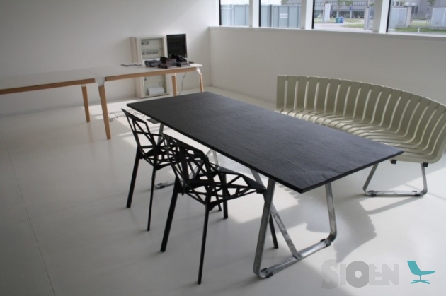 TafelMateriaal:frame van verzinkt staalplaat. Top in natuurlijke split Italiaanse Ardesia leisteen.Geschikt voor gebruik buitenshuis.Beschikbaar in:159 cm x 79 cm200 cm x 79 cmHoogte: 71,5 cmDesigned by Robin Day (2005)