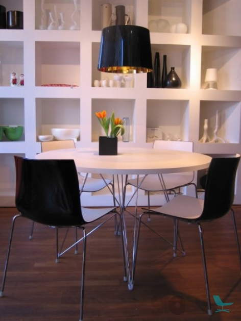 TafelMateriaal:frame in stalen staaf geschilderd in epoxy hars of verchroomd.Top in MDF met polymere deksel.Beschikbaar in:200 cm x 90 cmDiameter: 120 cmHoogte: 74 cmDesigned by Magis (2003)