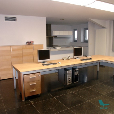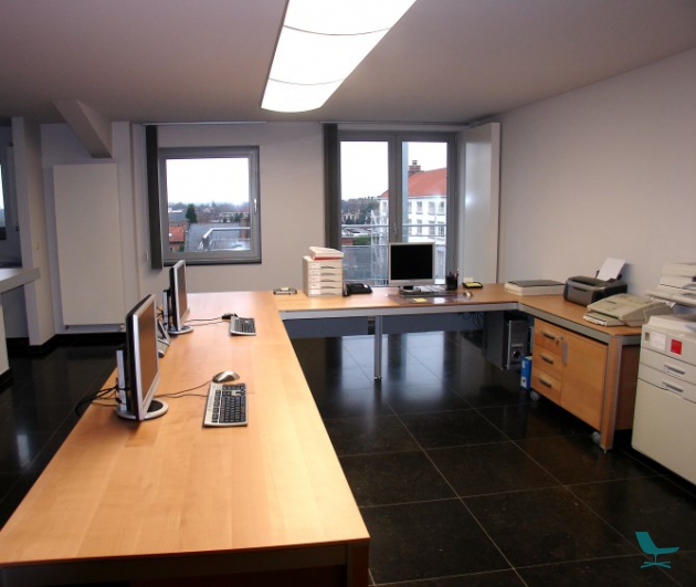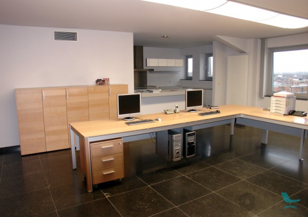 Het kantoor is ingericht met meubilair van Alea uit het gamma Zefiro EXE.