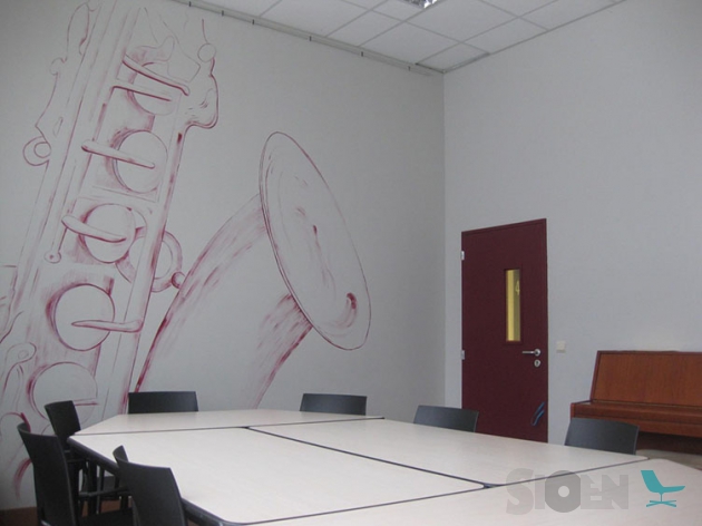 De vergaderzalen Ensor, Panamarenko en Sax zijn voorzien van de Interdesk Custom Project Tafels samen met de stapelbare Rexite - Alexa - 4 Legs stoelen met en zonder armleggers.